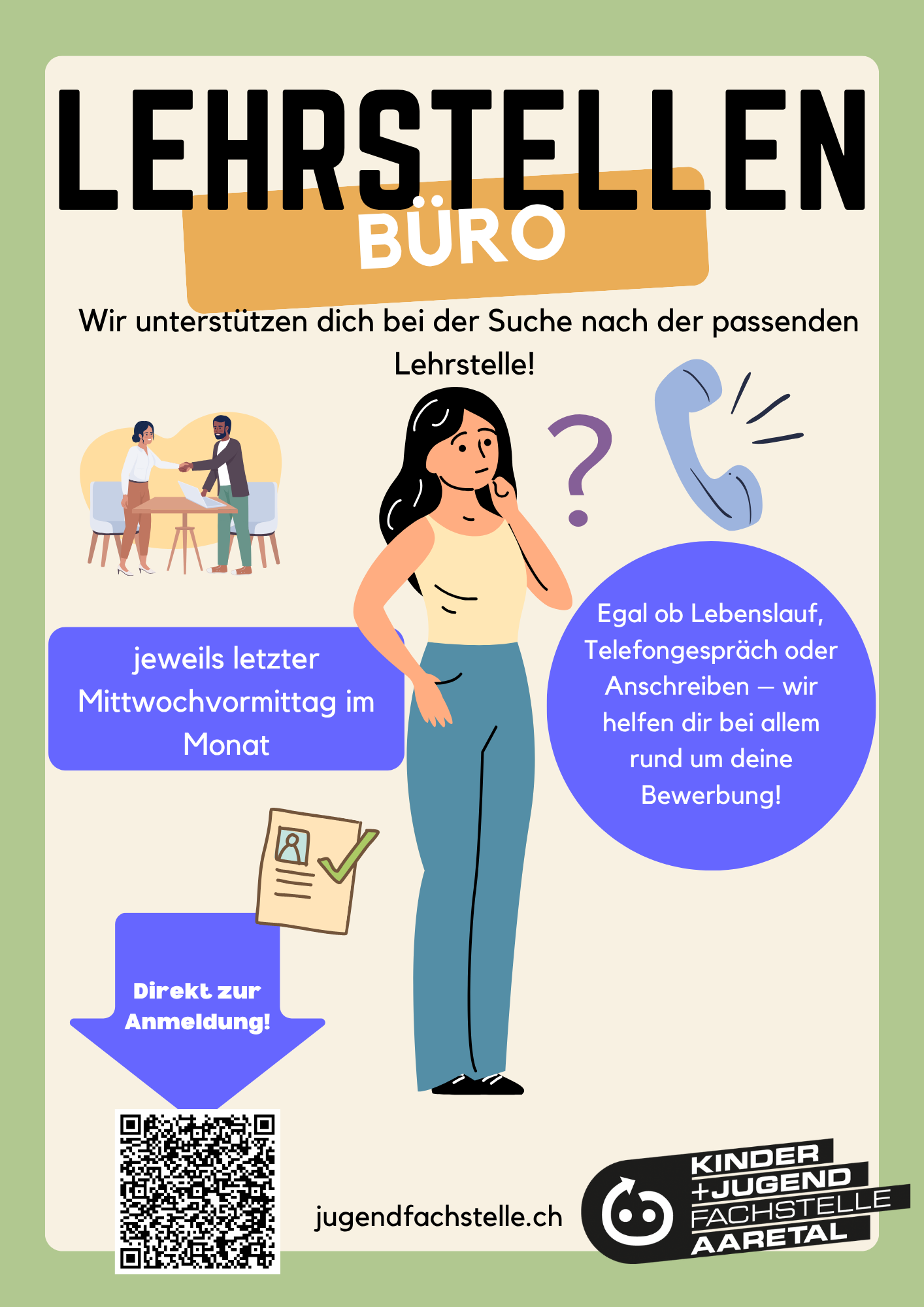 Termine jeweils am letzten Mittwochvormittag des Monats unter: Bewerbungscoaching. Für Einwohnerinnen und Einwohner der Anschlussgemeinden kostenlos.