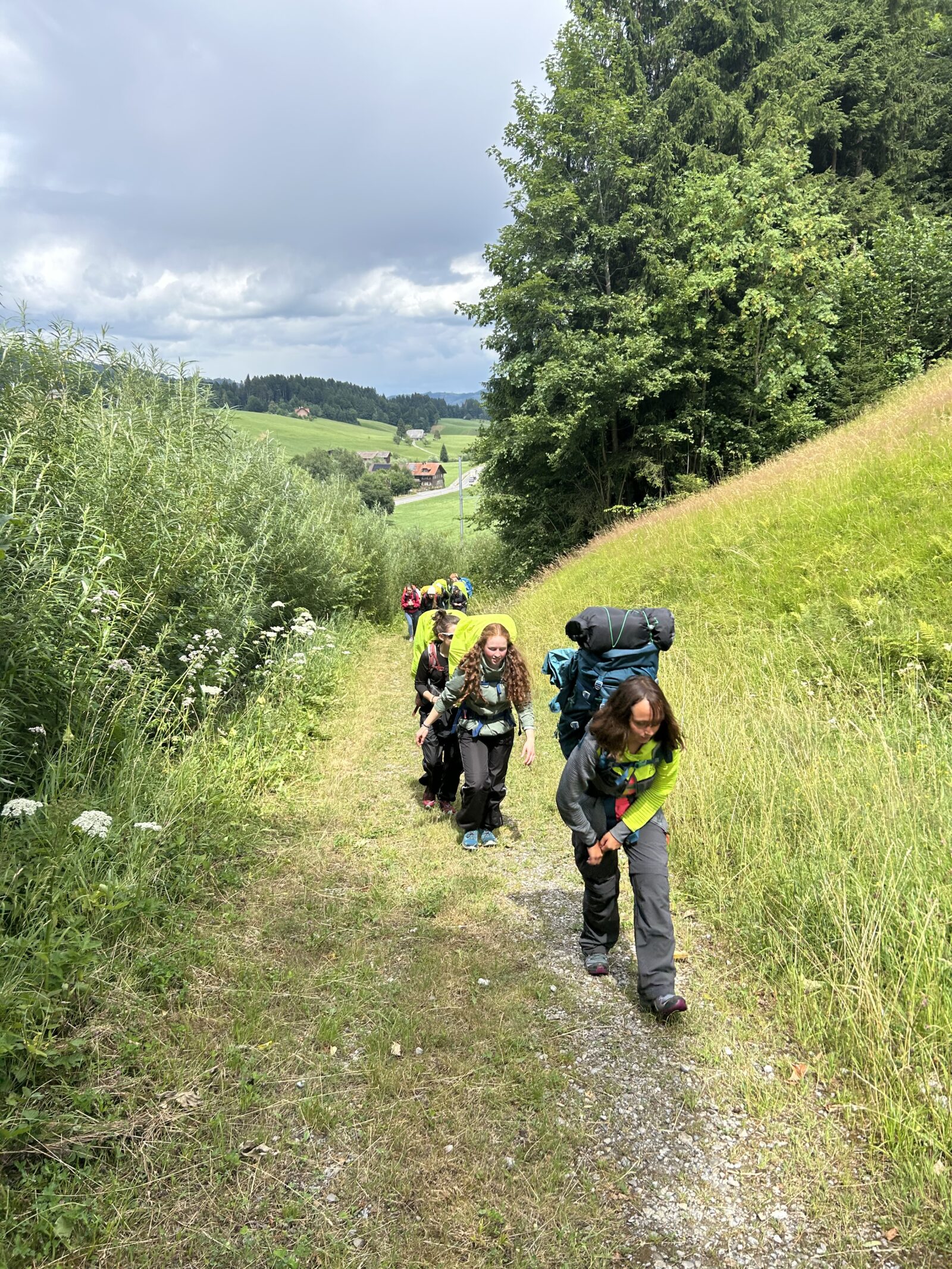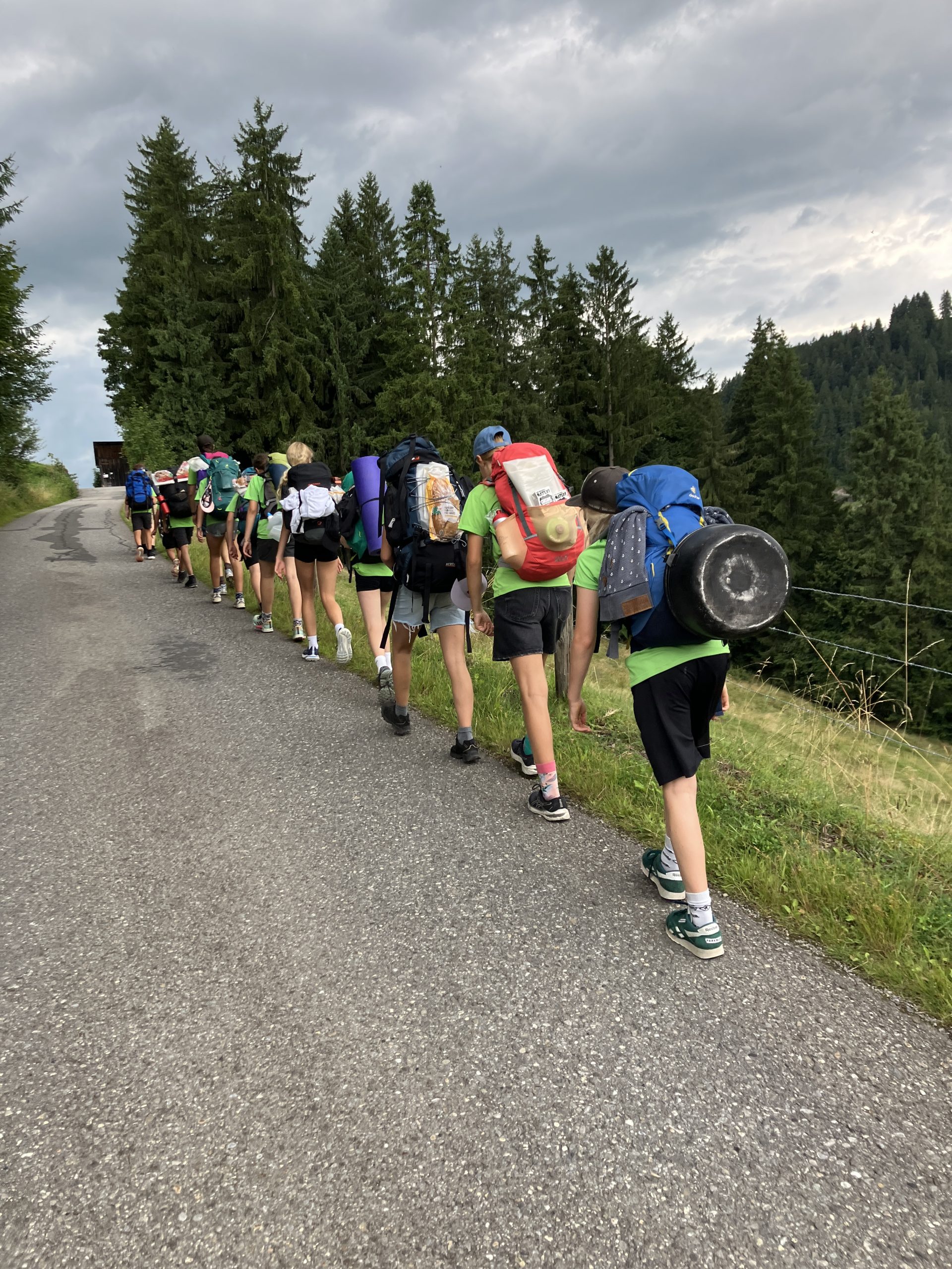 12 Jugendliche aus dem Aaretal suchten vom 5.-7. August auf dem Heiwäg KiDS den Weg zu Fuss nach Münsingen. Ausgesetzt im Innereriz, führte uns unser Weg über Linden, Steffisburg und Kiesen zurück nach Münsingen. Nach einem kurzen ersten Tag haben wir unseren ersten Schlafplatz wegen Regenwarnung bereits um ca. 17:30 auf einer überdachten Holzbrücke in einer wunderschönen Schlucht im Eriz gefunden. Am zweiten Tag starteten wir mit einigen steilen Höhenmeter nach oben, wonach wir Steffisburg am Nachmittag zu einem wohlverdienten verspäteten Zmittag erreichten. Als wir uns um ca. 21 Uhr an der Aare bei Kiesen in einem Naturschutzgebiet befanden, machte sich allmählich Nervosität um das Finden eines Schlafplatzes breit. Mit einer guten Portion Glück und grosszügiger Gastfreundschaft durften wir schlussendlich auf dem Golfplatz in Kiesen in einem grossen Festzelt übernachten und wurden von einer Nachbarin um 21:30 mit einem Teller Spaghetti für alle belohnt. Am darauffolgenden morgen erreichten wir alle unser Ziel und kamen bei warmen Temperaturen nach einem Abschlussbräteln an der Aare im Schlosspark Münsingen an. Das Abenteuer hat alle Beteiligten sowohl körperlich als auch zwischenmenschlich herausgefordert und bleibt ein unvergessliches Erlebnis.