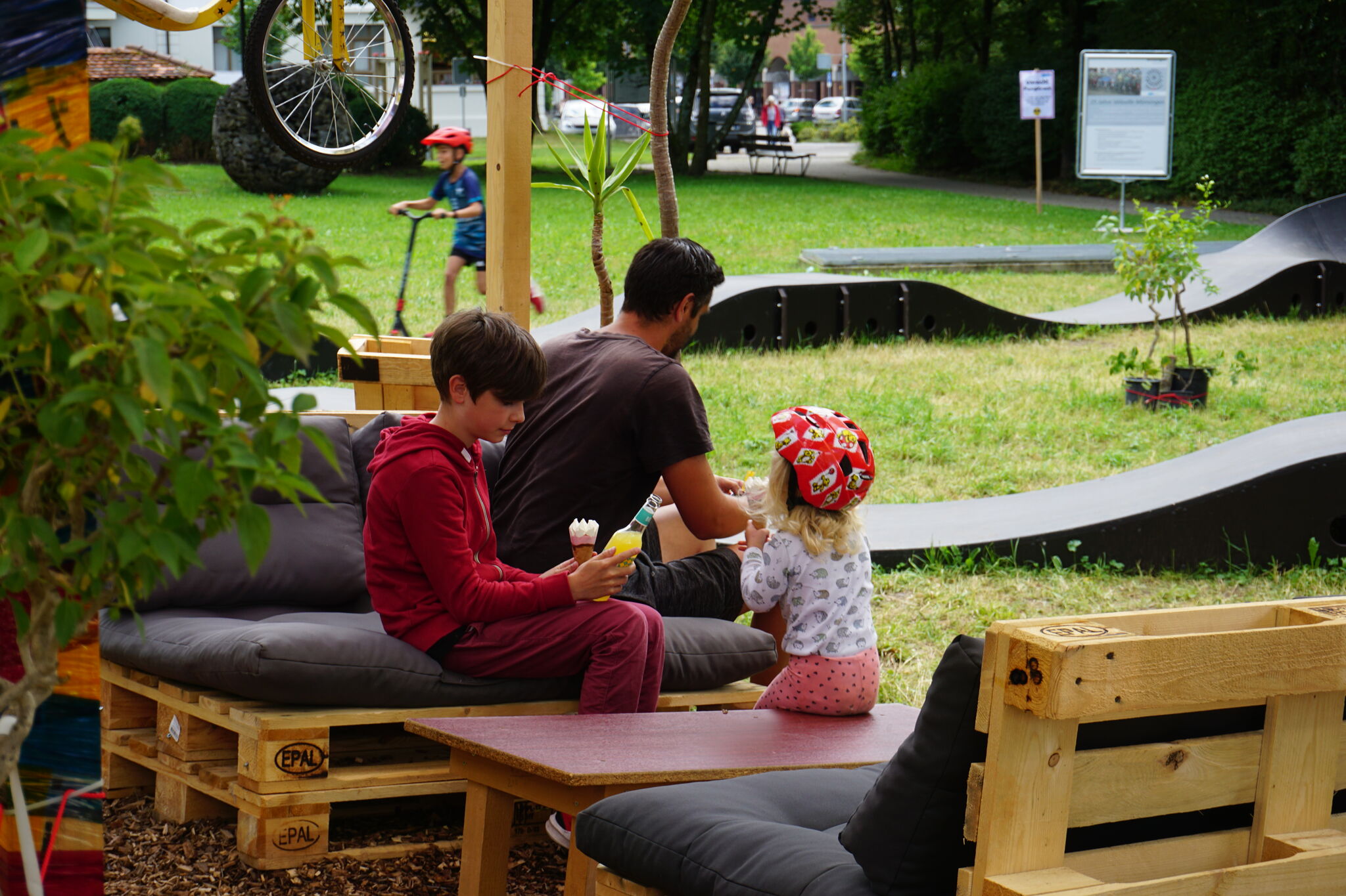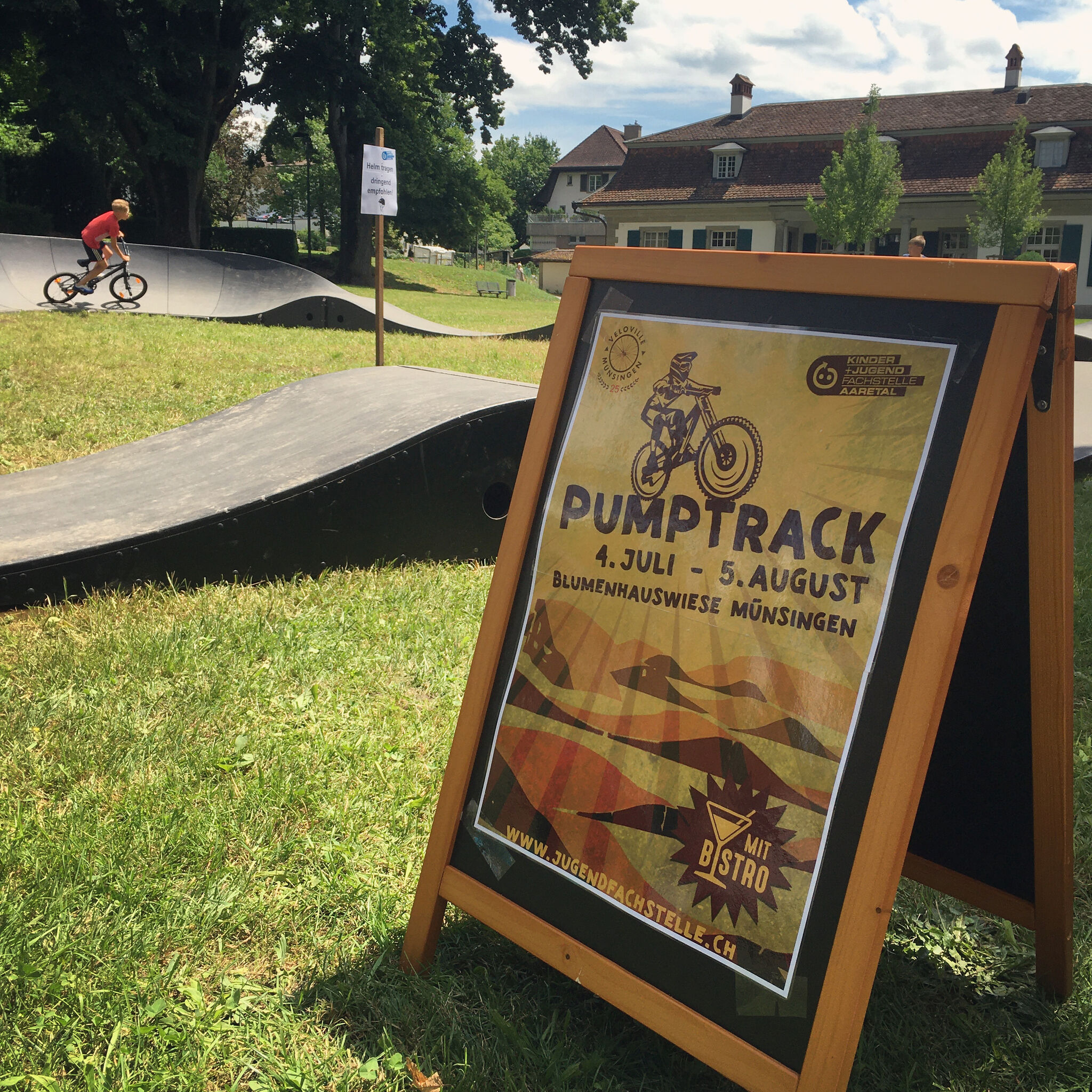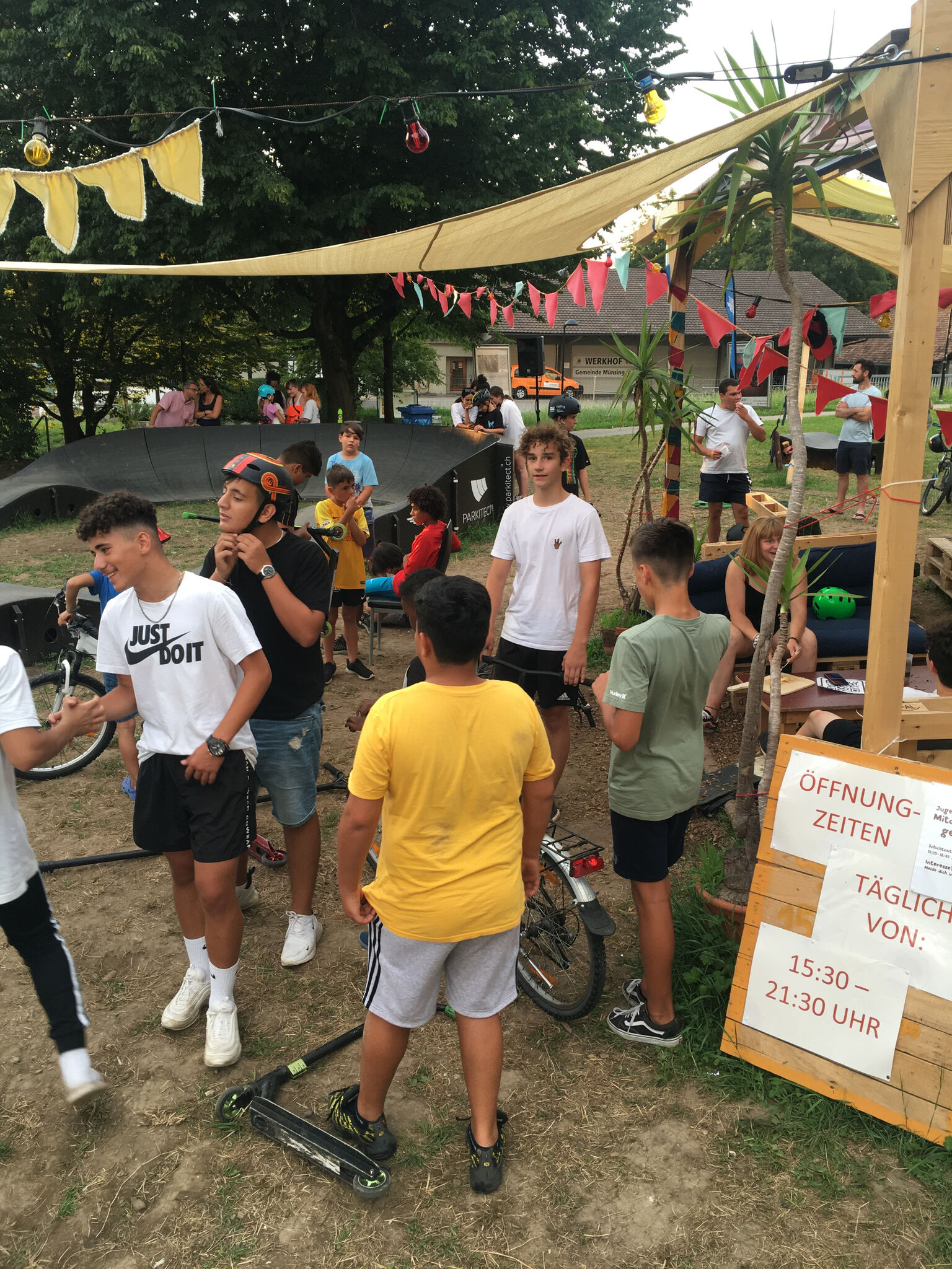 Trotz intensiven Wetterkapriolen in den Sommerferien 2021 war das Angebot ‚Pumptrack und PopUp Bistro‘ auf der Blumenhauswiese in der zweiten Ausgabe ein grosser Erfolg. Der Treffpunkt rund um das Bistro mauserte sich bei guter Witterung zum regelrechten Treffpunkt für Jugendliche aus Münsingen und den anliegenden Gemeinden. Der Pumptrack wurde sowohl von Kindern als auch von Jugendlichen zu hunderten benutzt. Die Arbeiten im Gastrobetrieb sowie Auf- und Abbauarbeiten wurden insgesamt von einem Team aus 28 motivierten Jugendlichen erledigt. Chapeau!